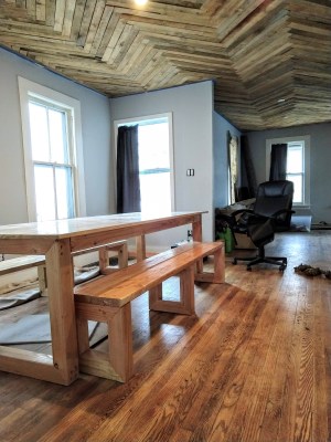 We now have a beautiful, custom-made table perfect for sitting down to eat or accommodating sprawling work, with enough space to invite others to gather with us when we wish. There is something extra sweet about sitting down to eat in a room I helped renovate at a table I designed and built.