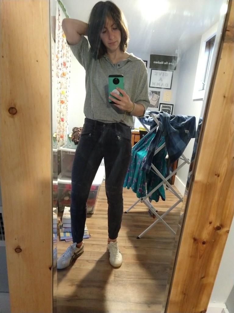 I know these aren’t good photos, but I kind of enjoy documenting what I’m wearing and don’t overly care about good lighting or feel a need to take the time to edit them. I love exploring my personal style and a quick snapshot to look back on over time is all I need. It’s fun to see how my closet and confidence have evolved. I’ve become significantly more conscious over what I add to my wardrobe and am constantly culling out what no longer works for me. I appreciate that second hand shopping exists because it affords me a far more interesting and sustainable closet. I put a lot of thought into my purchases before I bring anything home. I’m not interested in having unnecessary excess, just enough to keep my options open and allow me to play.