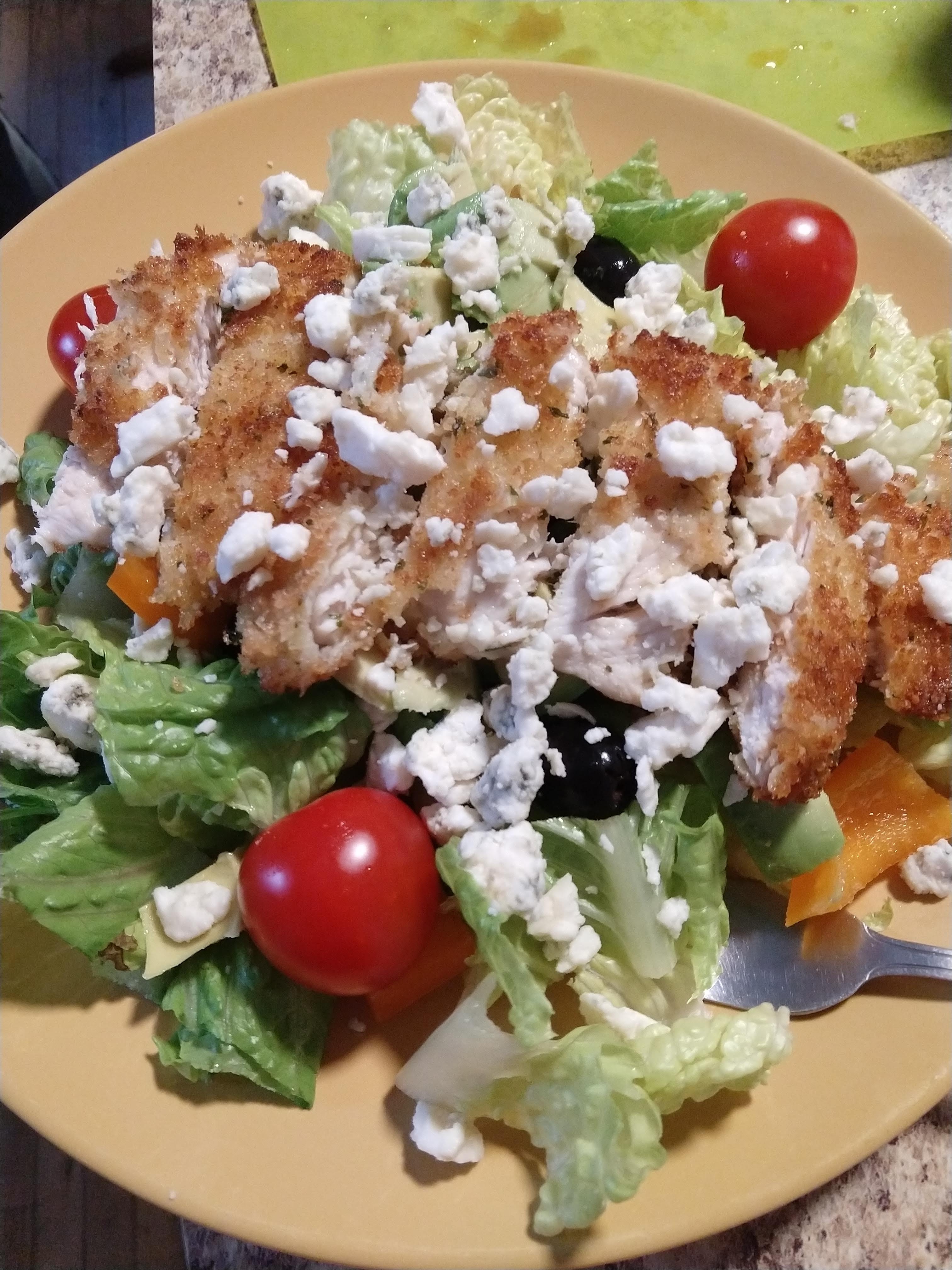 Chicken cutlets make for a delicious and hearty protein. Paired with your favorite crunchy vegetables and a cheese and dressing of your choice, this makes for a super satisfying and beautiful restaurant-quality salad. Definitely worthy of dinner guests or just you on a Monday night.